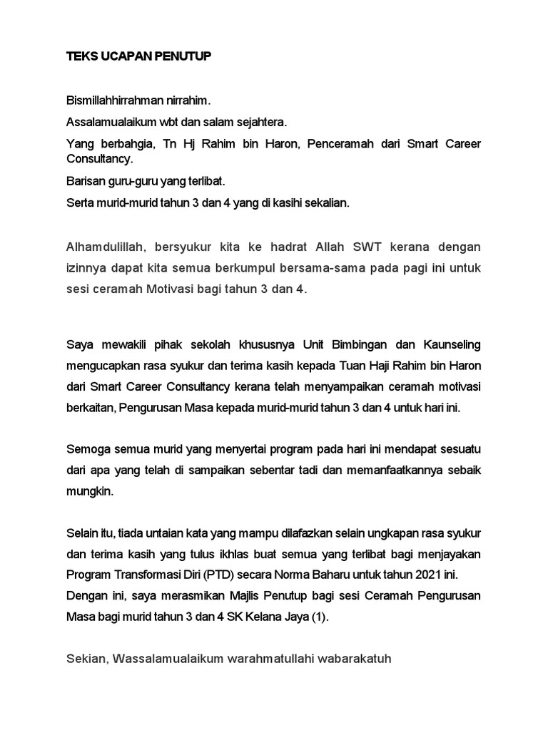 Teks Ucapan Majlis Penutup Pdf